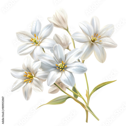 Elegant bouquet of pristine white flowers with detailed stamen, perfect for wedding invitations, spring designs, or adding a touch of natural beauty