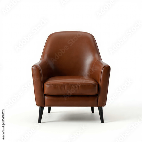 Elegant brown armchair photographed in isolation on white, showcasing comfortable cushions and stylish form, ideal for furniture advertising, home styling, and modern interior projects.