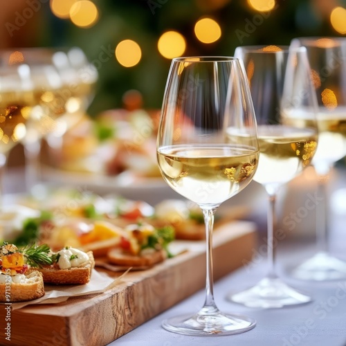 Elegant buffet with white wine and a selection of appetizers, Wine White Pairing, Party and Celebration