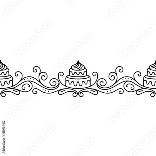 vector, cake, border, outline, decoration, design, swirl, floral, ornament, elegant, birthday, invitation, wedding, pastry, bakery, cream, black, line art, minimalist, decorative, celebration, template, pattern, frame