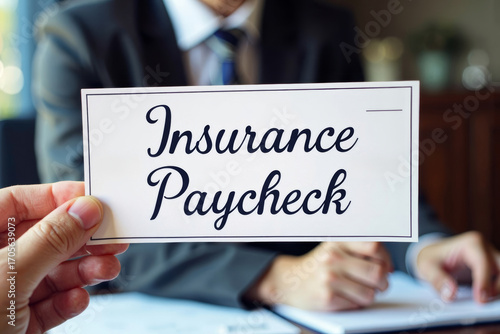 Elegant Calligraphy: Hand Holding Insurance Paycheck in Photograph