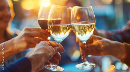 Elegant Celebration with Clinking Wine Glasses Against a Blurred Background