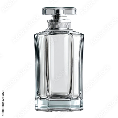Elegant Clear Glass Perfume Bottle with Silver Cap in Minimalist Design for Fragrance Store Display and Product Photography Transparent background or png