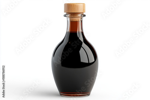 Elegant dark sauce bottle with a wooden cork, ready to enhance your culinary creations.