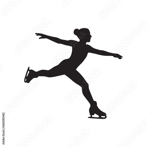 Elegant Figure Skater Silhouette Performing a Beautiful Ice Skating Routine on White Background