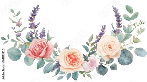 Elegant floral arrangement with roses and lavender in watercolor style for decorative purposes