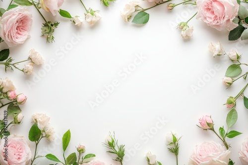 Elegant floral border with vibrant flowers lush greenery on light background. Ideal for decorative designs wedding invitations or romantic designs valentines day, mother's day, women's day