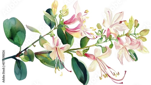 flower, tree branch, bloom, pink, white, floral, illustration, art, nature, design, leaf, flower petals, botanical, garden, plant, beauty, fragrance, spring, summer, delicate, soft, colourful, artistic, high-coloured, vibrant, green, stem, blossom, bud, graceful, tender, natural, realistic, watercolor, graphic, digital, painted, pattern, composition, bouquet, background