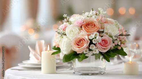 flower, floral arrangement, rose, centrepiece, elegant, romantic, celebration, table setting, bright, soft, fresh flower, floral pattern, special occasion, candlelight, beautiful, fresh, bouquet, festive, flower vase, nature