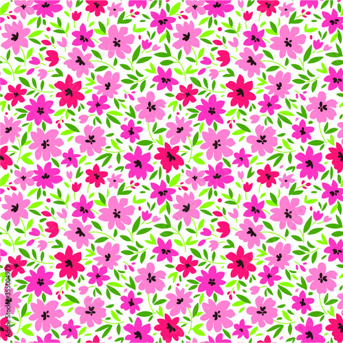 Elegant floral pattern in small pink flower. Liberty style. Floral seamless background for fashion prints.