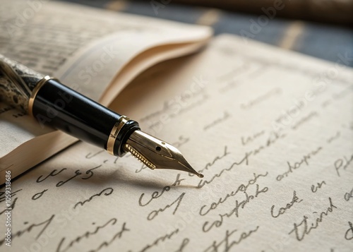 Elegant Fountain Pen on Vintage Paper with Calligraphy - Minimalist Photography