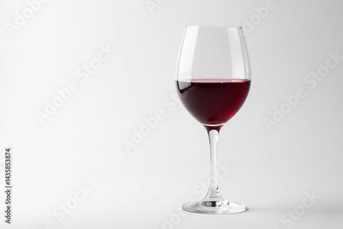 Elegant glass of red wine isolated on pristine white, studio shot, closeup
