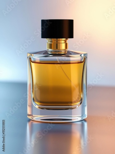 Elegant glass perfume bottle on metallic surface , beauty, reflective, perfume bottle