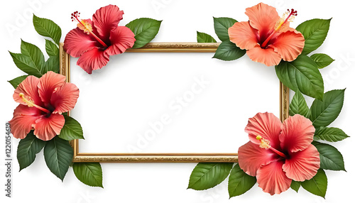 Elegant Gold Frame with Hibiscus Flowers Tropical Design