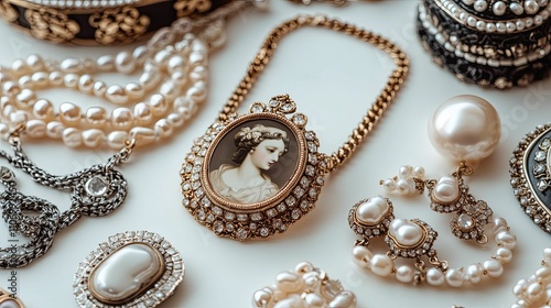 necklace, gold, pearl, portrait, woman, jewellery, elegant, ornate, vintage, antique, gemstone, diamond, crystal, chain, pendant, brooch, earring, bracelet, luxury, fashion, accessory, style, classic, beautiful, detail, glamourous, rich, delicate, exquisite, dainty, sophisticated, timeless, precious, treasure, heritage, craftsmanship, art, design, historical, regal