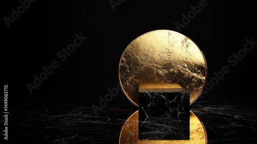 Elegant golden and black marble podium display.