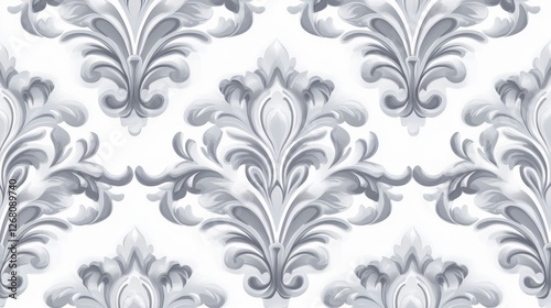 Elegant Gray Damask Pattern with Refined and Vintage Look on a White Background