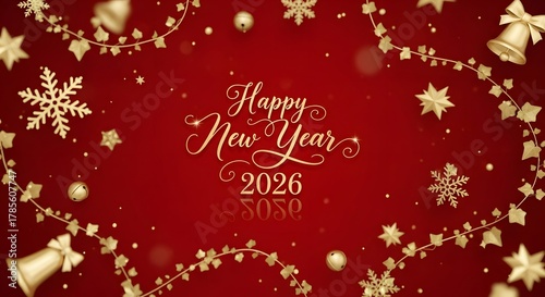 2026, new year, happy, gold, gold, red, celebration, background, holiday, festive, christmas, decoration, ornament, snowflake, star, ribbon, sparkle, elegant, luxury, design, greeting, card, joy, bright, glamour, december, success, prosperity, magic, light, season