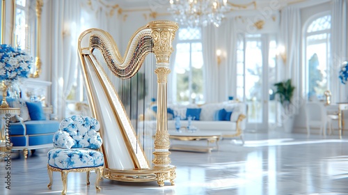 harp, luxury, art, elegant, room, blue, furniture, style, living, ambience, creativity, aesthetic, sophisticated, atmosphere, relaxation, scenic, chic, serenity, prestige, soft, tranquil, visual, contemporary, unique, environment, enchanting, vision, music, sound, instrument, harmony, grace, trendy, exquisite, polished, warm, glamour, ornate, plush, crafted, impression, ambient, lush, upscale