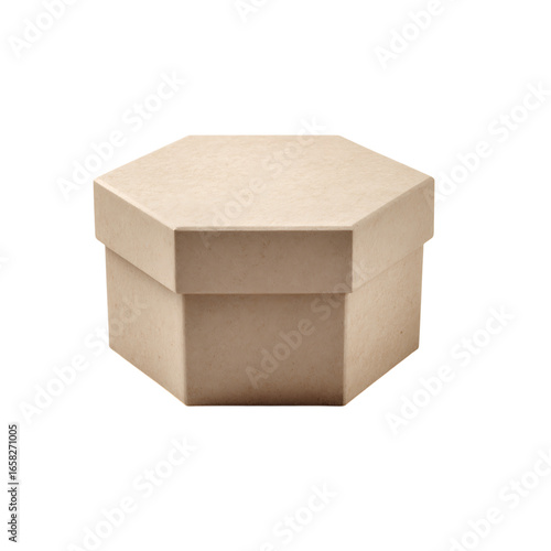 Elegant hexagonal gift box crafted from textured paper, perfect for premium product packaging, special occasion surprises, and sophisticated branding needs, showcasing minimalist design.