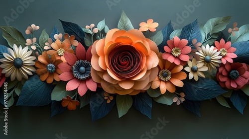 flower, crown, rose, daisy, leaf, paper, cut, layered, natural, elegant, floral, botanical, headpiece, accessory, nature, plant, foliage, beauty, fashion, design, hand-made, creative, feminine, spring, summer