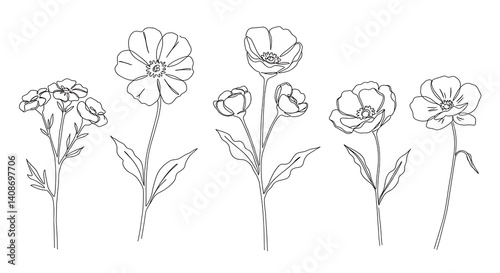Elegant Line Art Floral Collection: Simple Botanical Drawings