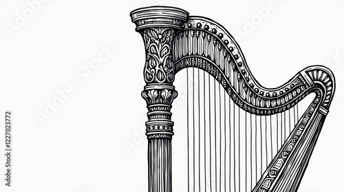 Elegant Line Art Harp Illustration