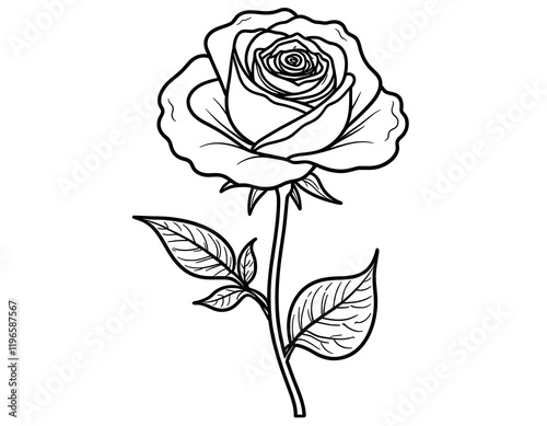 Elegant Line Art Rose Drawing Single Bloom Botanical Illustration