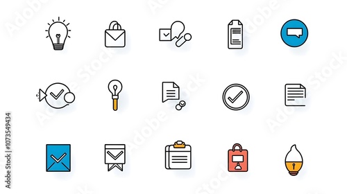 Elegant line icons for efficient customer feedback management and experience evaluation on clean white background Symbols for review satisfaction rating survey response and more
