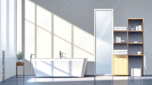 bathroom, minimalist, design, bathtub, modern, cabinet, interior, natural, light, panoramic, window, relaxation, contemporary, sleek, space, clean, line, home, decor, stylish, serene, storage, architecture, high, resolution, elegant, ambience, luxurious, improvement, flooring, wooden, racked, mirror, shadow, colours, correction, bright, aesthetic, illumination