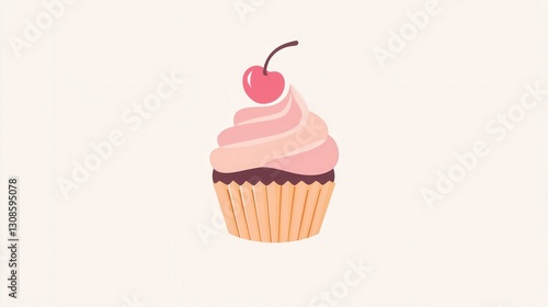 Elegant minimalist cupcake logo design featuring a cherry on top in warm pastel colors ideal for bakery branding