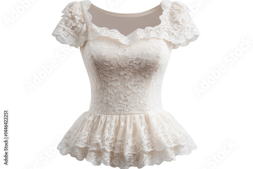 Elegant off white lace top short sleeves sweetheart neckline tiered ruffle bottom Perfect for a