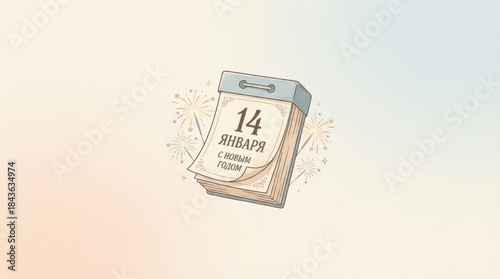 elegant orthodox new year square poster template illustration template featuring calendar page turning with small fireworks on simple pastel background with plenty of empty space