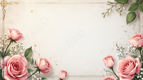 pink rose, wedding invitation, background, elegant, rose, rose, flower, floral, design, wedding, invitation, card, template, vintage, romantic, soft, pastel, gold, frame, border, cream, white, background, texture, illustration, botanical, floral background, greeting card