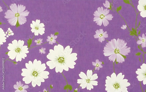 floral, pattern, purple, lavandula, white, flower, cosmos, daisy, design, textile, fabric, background, wallpaper, texture, spring, summer, nature, botanical, vintage, retro, seamless, repeat, illustration, art, graphic, elegant, pretty, delicate, soft, pastel, colours, bloom, blossom, plant, purple background, white flower, floral pattern, seamless pattern