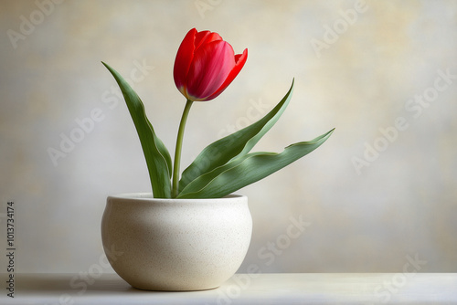 red, tulip, flower, nature, botanical, elegant, decoration, interior, beauty, vase, green leaf, modern, minimalist, fresh, spring, colourful, floral, still life, art, closeup, flower petals, natural light, background, home decor, composition, serene, charming, simplicity, vibrant