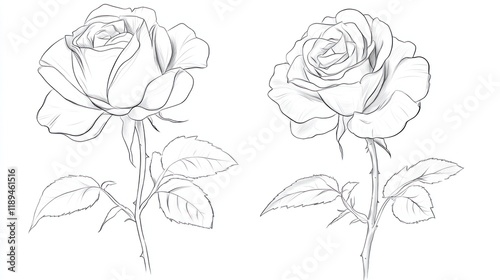 Elegant Rose Sketches: A Pair of Delicate Line Drawings
