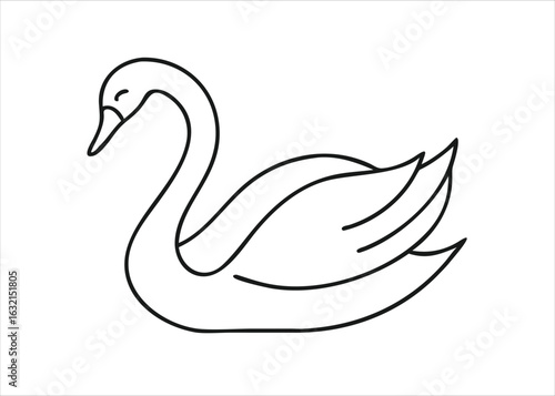 Elegant single swan depicted with clean line art representing wildlife and nature s grace isolated on white background