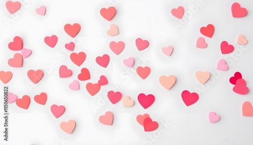 Elegant Spread of Heart-Shaped Confetti on a White Canvas