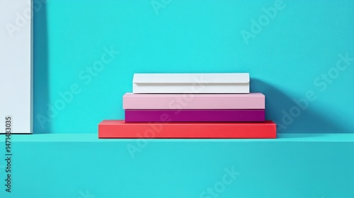Elegant Stacked Books with Bright Colors on a Vibrant Teal Background in a Minimalist Style
