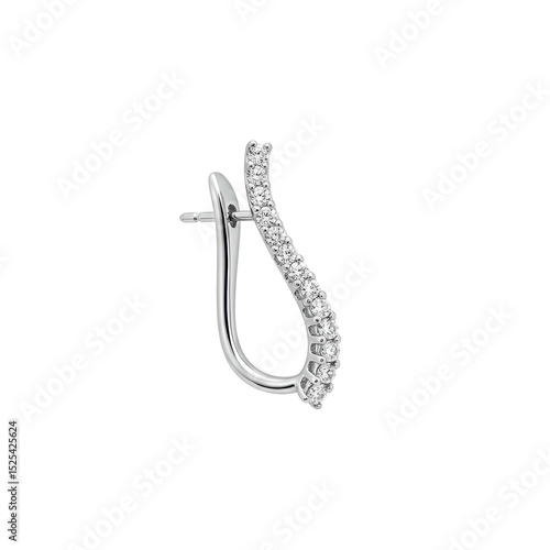 earring, jewellery, silver, crystal, elegant, isolated, white, studio, product, commercial, luxury, sterling, climber, pave, brilliant, macro, background, lighting, polished, sleek, curved, sparkle, shine, fashion, accessory, adornment, design, intricate, craftsmanship, detail, pristine, sharp, sharpened, high key, contrast, professional, precise, contour, seamless, pure, rendering, realistic, delicate, sophisticated, glamour, expensive