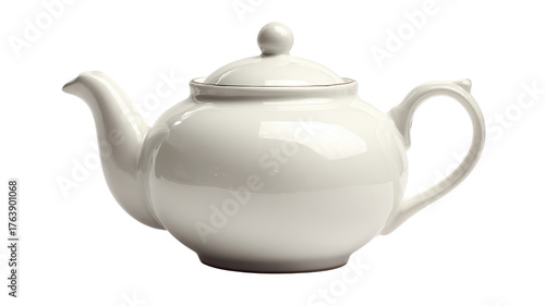 Elegant white ceramic teapot for brewing tea, classic kitchenware and tableware design symbol of hospitality and relaxation on white background
