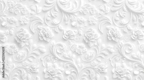 Elegant white floral pattern with intricate 3d effect on textured background