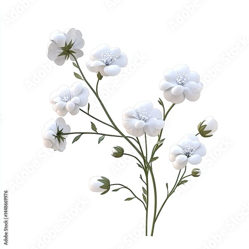 Elegant White Flowers with Spring Bloom, and Botanical Illustration.