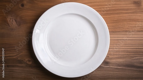 Elegant white plate resting on a minimalistic table, inviting ambiance for culinary presentations, perfect for showcasing dishes or innovative dining ideas
