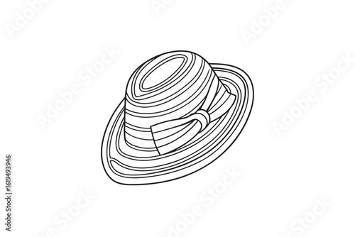 Elegant Woman s Hat Outline with Ribbon a Stylish Accessory for Fashion and Summer Perfect for Coloring Books and Creative Design Projects Isolated on white background