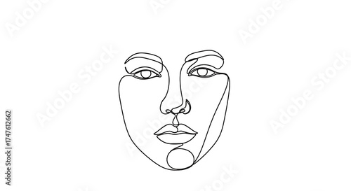Elegant woman's face one line art modern abstract style