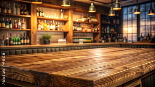 Elegant wooden tabletop with bar in background , elegant, wooden, tabletop, bar, background, interior, design, luxury