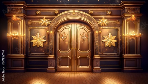 elegant, wooden, theatre, door, gold, marquee, play, light, stage, performance, cinema, entrance, classic, luxury, drama, entertainment, opening, show, art, traditional, interior