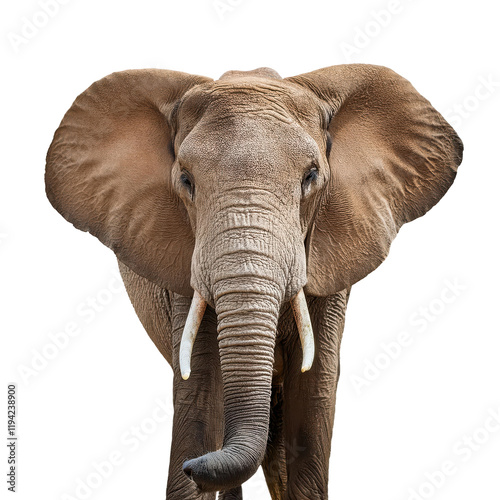 Elephant portrait, white isolated background